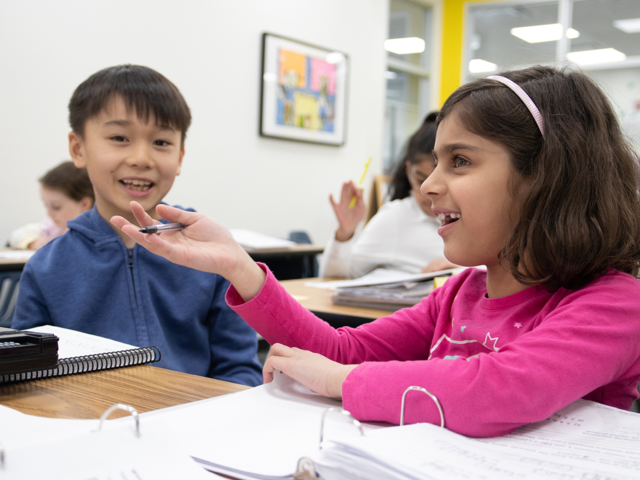 The Grade 2 curriculum introduces many mathematical concepts, and the weekly 1.5-hour class is packed with new learning each week. By the end of Grade 2, students can add, multiply, divide, as well as work with integers up to 2-digit by 1-digit calculations. Through drills, students work cooperatively to reach a class goal. They continue to master regrouping numbers to multiples of tens and hundreds, are introduced to primes, composites, special numbers, and they learn to list factors. Later in the year, the grade 2 students locate rationals on a number line, add and subtract positive and negative rationals, and gain a deep understanding of how numbers relate to each other. In addition our grade 2 students learn to convert numbers from base 10 to other bases with a focus on learning place value. Grade 2 students write tests throughout the year, as well as the Spirit of Math International Contest during class time, with an exam at the end of the year. The overall curriculum is fast-paced and engaging to our Grade 2 students.